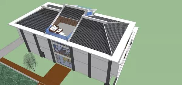 原本設計部分就可以在這里結束了,但老婆提出來說她希望有個閣樓,帶天窗的那種。我考慮了一下,通過對中間 6 米部分屋頂的變形處理,我在屋頂的北側拉出了一個露臺出來。具體布置可以看下面的圖。