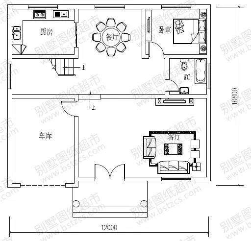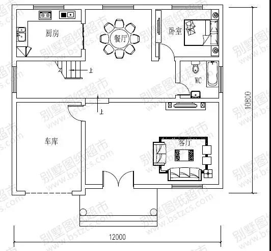 一 層: 客廳、臥室、廚房、餐廳、衛生間、車庫