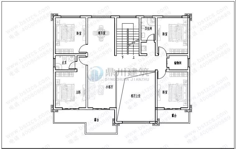 二 層:起居室、棋牌室(附露臺(tái))、臥室(附衛(wèi)生間,陽臺(tái))、臥室(附陽臺(tái))、臥室、衛(wèi)生間