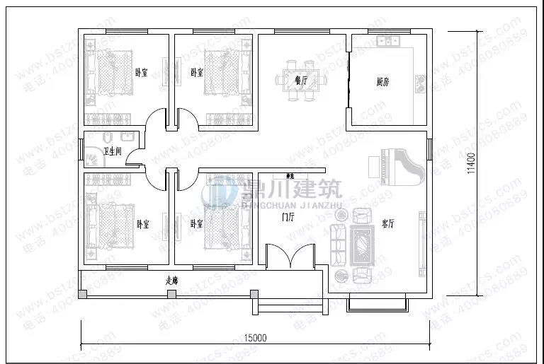 開間: 15米 進(jìn)深: 11.4米