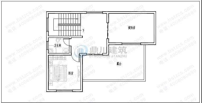 三 層:健身房、主臥(附衛(wèi)生間,陽臺(tái))、臥室、衛(wèi)生間、露臺(tái)