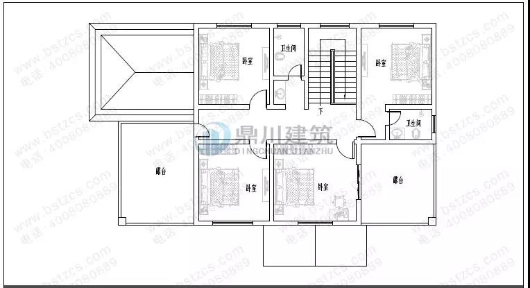 二層:臥室(附衛(wèi)生間)、臥室(附露臺(tái))、2臥室、衛(wèi)生間、露臺(tái)