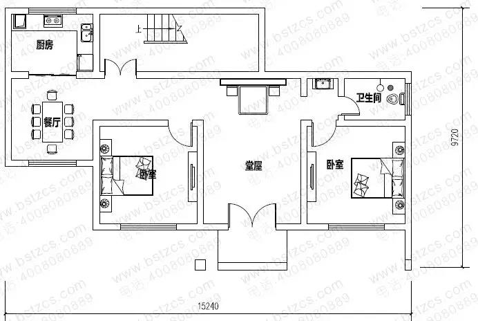 一 層: 堂屋、2臥室、廚房、餐廳、衛生間