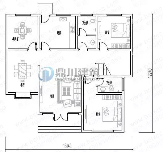 一 層: 客廳、臥室(附衛生間)、臥室、棋牌室、廚房、餐廳、衛生間