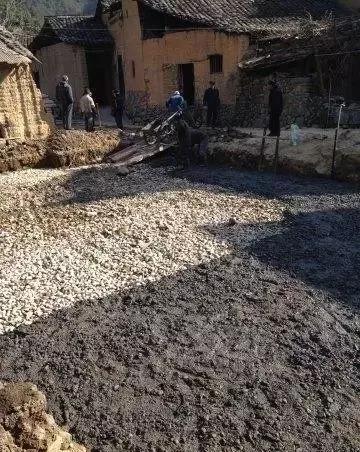 打底的石子上場,拖拉機共拉了3車約3.5方每車。