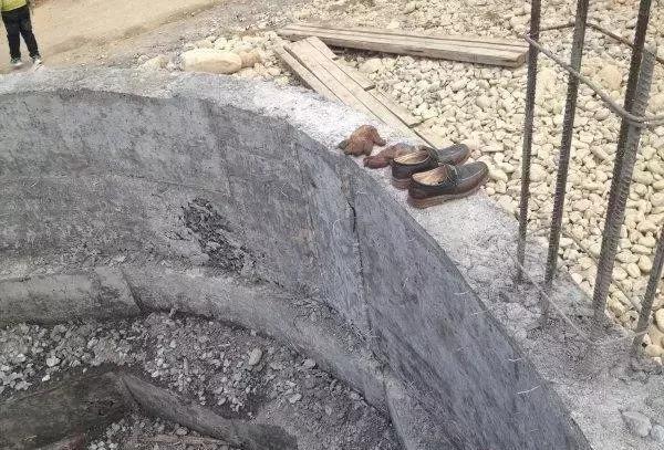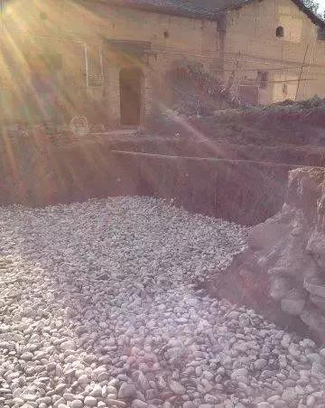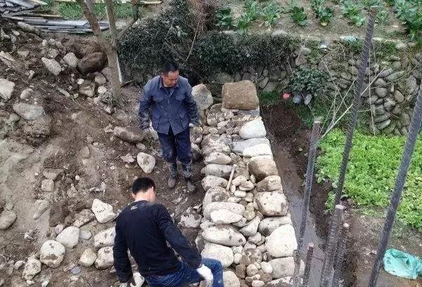 二姐夫和弟弟在砌石墻,然后在枇杷樹底下要做化糞池。