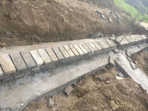 基礎(chǔ)澆好后,砌底角磚,用的是舊房拆下來的磚,能省一筆是一筆