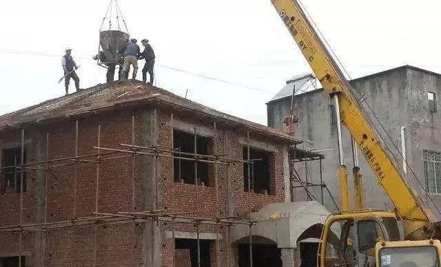 ▲坡屋面混凝土澆筑