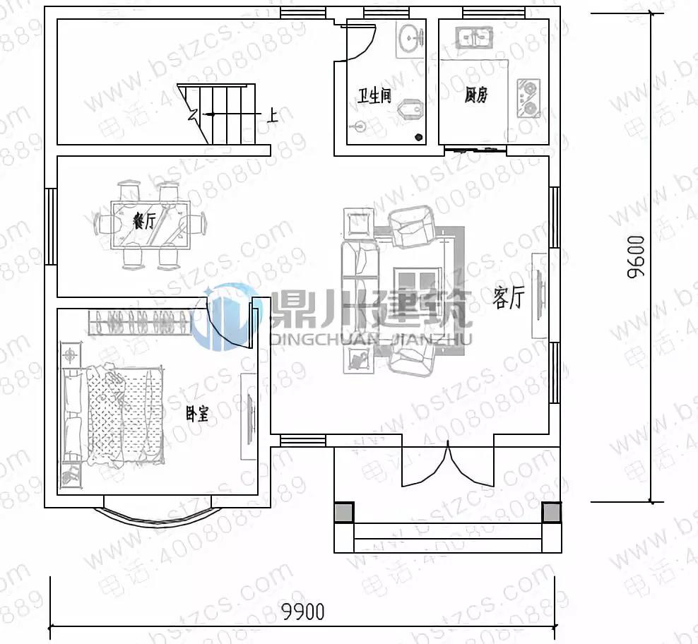 一 層:入口玄關(guān)、客廳、餐廳、廚房、客房、衛(wèi)生間
