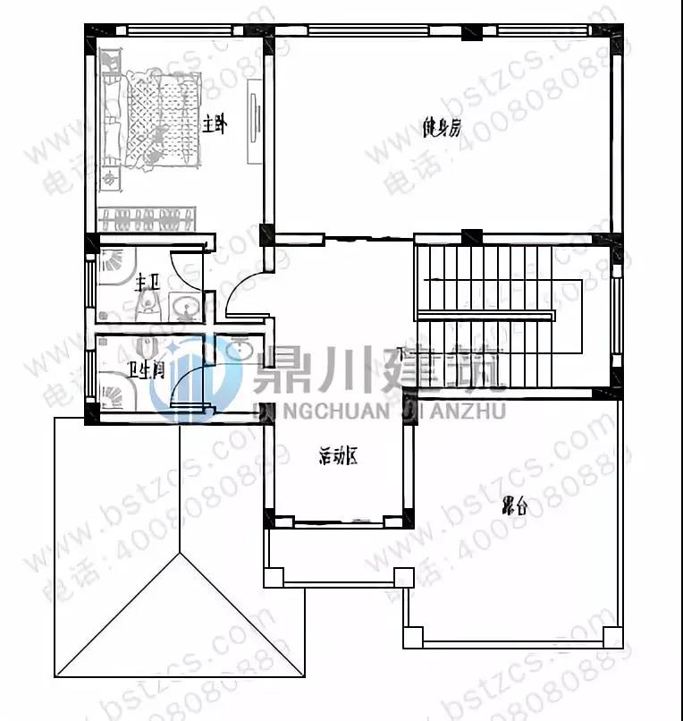 三 層:臥室(附衛(wèi)生間)、健身房、衛(wèi)生間、露臺