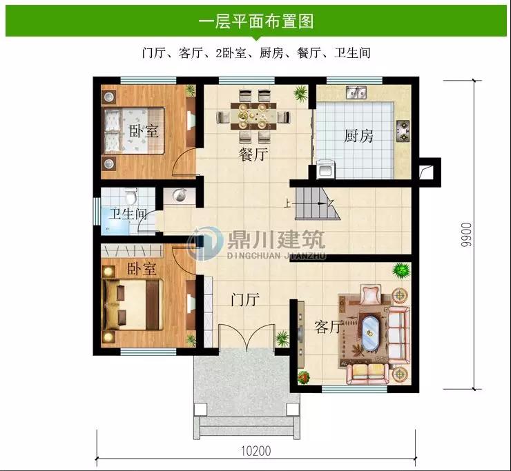 一 層:客廳、2臥室、廚房、餐廳、衛(wèi)生間
