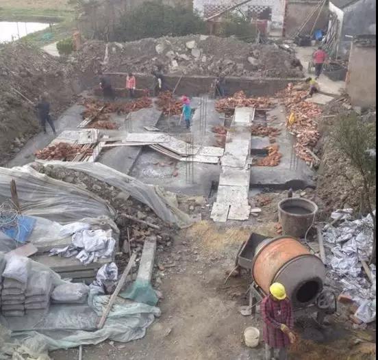 ▲上午放污管,下午挖機填土,基礎做好了