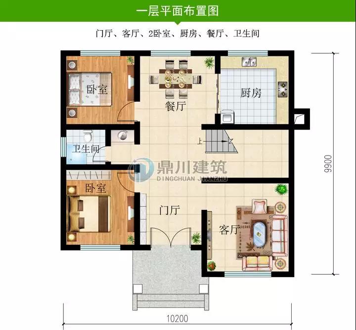 一 層: 門廳、客廳、2臥室、廚房、餐廳、衛(wèi)生間
