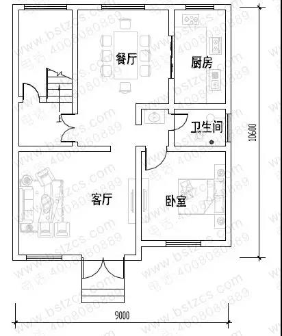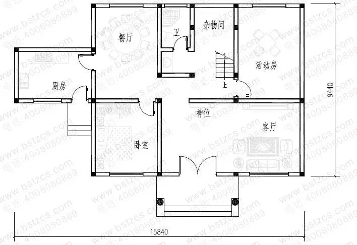 一 層:客廳、臥室、活動房(或臥室)、廚房、餐廳、雜物間、衛生間
