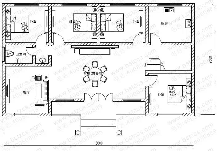 一 層:堂屋(兼餐廳)、客廳、4臥室、廚房、衛生間