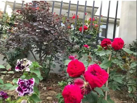 庭院景觀和滿園盛開的月季花