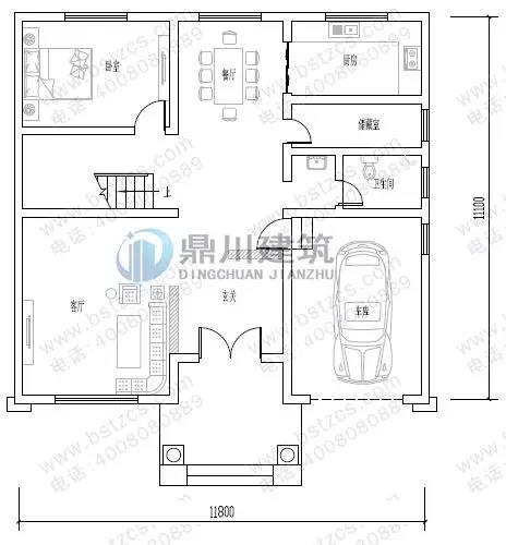 一 層:門廳、客廳、臥室、廚房(附洗衣房)、餐廳、衛(wèi)生間、車庫