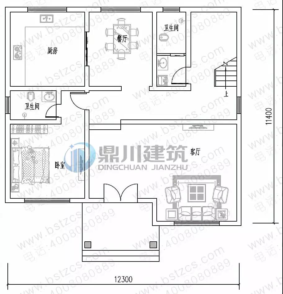 一 層:客廳、臥室(附衛(wèi)生間)、廚房、餐廳、衛(wèi)生間