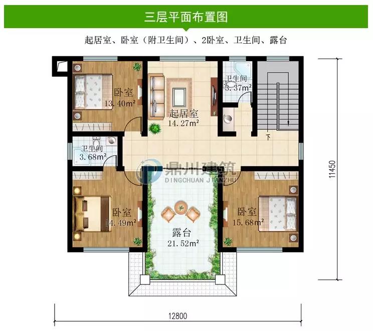 三 層:3臥室、書房、衛(wèi)生間、露臺(tái)