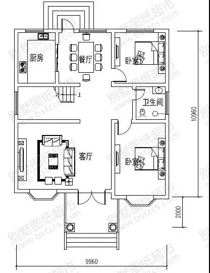 一 層:客廳、2臥室、廚房、餐廳、衛(wèi)生間