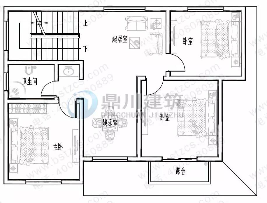 二 層:起居室、娛樂室、臥室(附露臺(tái))、2臥室、衛(wèi)生間