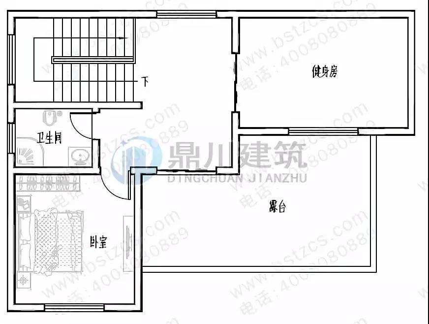 三 層:健身房、臥室、衛(wèi)生間、露臺(tái)
