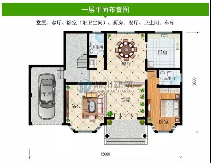一 層:堂屋、客廳、臥室(附衛(wèi)生間)、廚房、餐廳、衛(wèi)生間、車庫