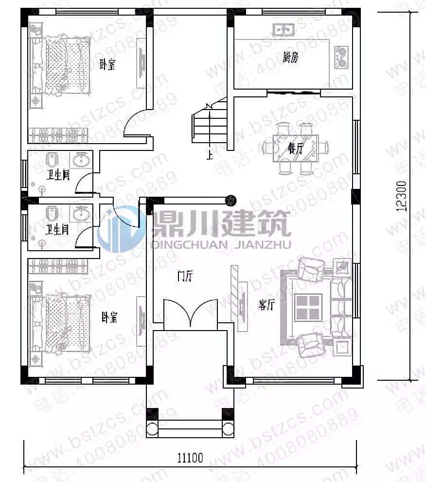開間: 11.1米 進(jìn)深: 12.3米