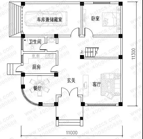 一 層: 客廳、臥室、廚房、餐廳、衛生間、車庫或儲藏室
