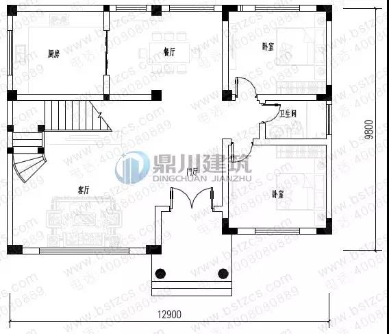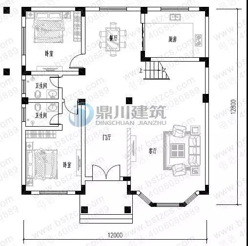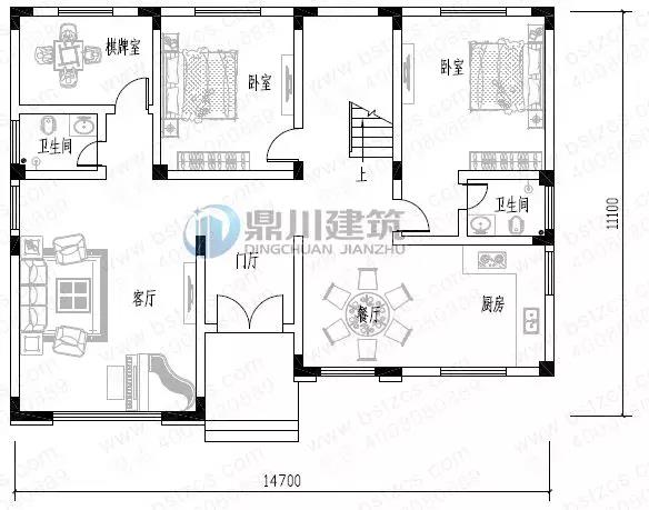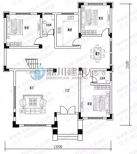 一 層:門廳、客廳、臥室(附衛生間)、臥室、廚房、餐廳、衛生間