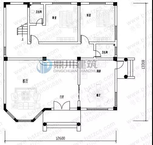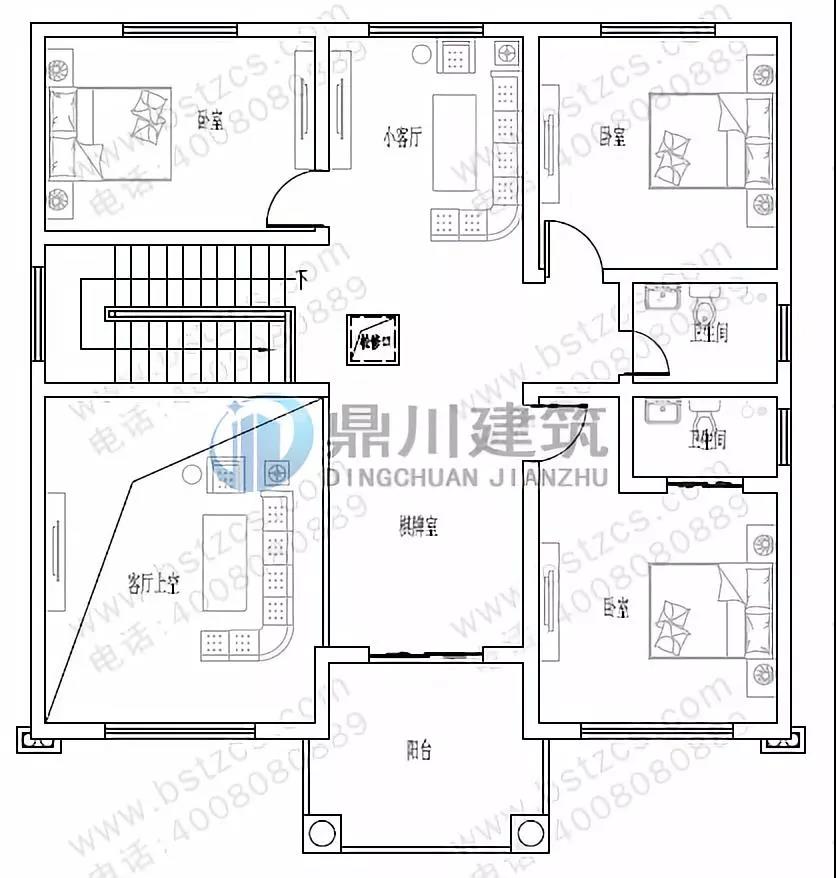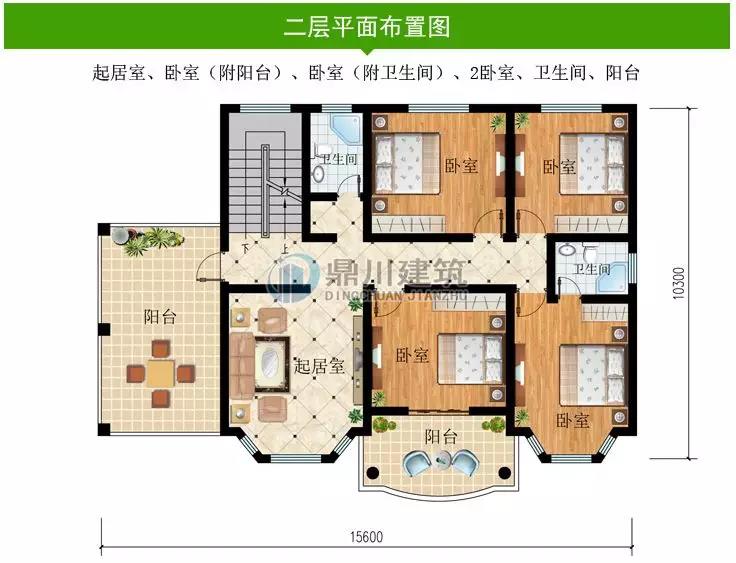二 層:臥室(附衛生間,陽臺)、臥室、衛生間