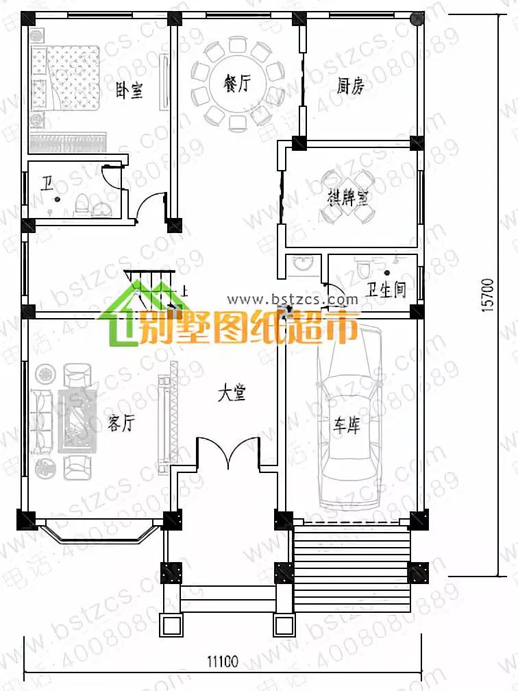 一 層:堂屋、客廳、臥室(附衛生間)、廚房、餐廳、衛生間、車庫