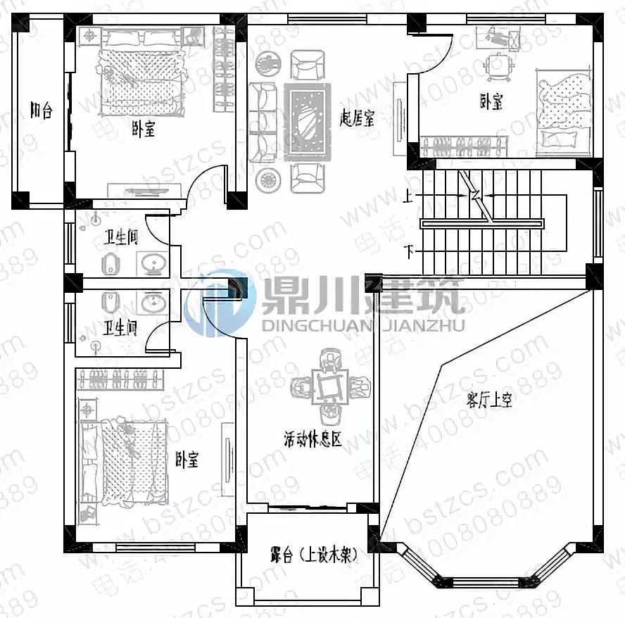 三 層:活動室、2臥室、書房、衛生間、露臺