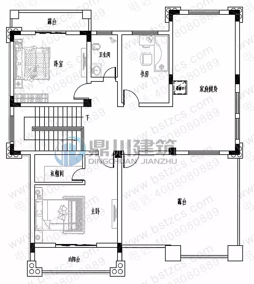 三 層:主臥(附書房,衣帽間,衛生間,陽臺)、臥室、洗衣房、衛生間、露臺