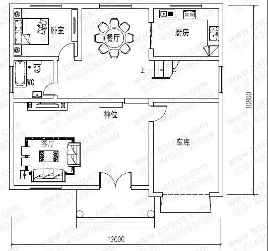 一 層: 客廳、臥室、廚房、餐廳、衛(wèi)生間、車庫