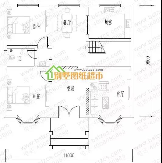 一 層: 堂屋、客廳、2臥室、廚房、餐廳、衛(wèi)生間