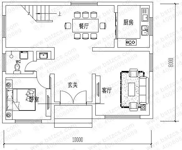 一 層:玄關(guān)、客廳、臥室、廚房、餐廳、衛(wèi)生間