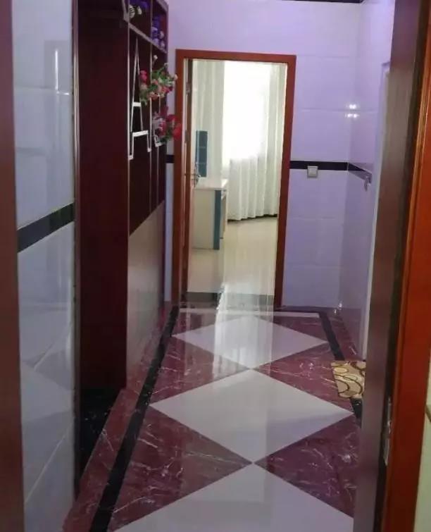 室內(nèi)裝修地面、墻面都用的是磁磚裝飾,既容易打理,又不怕孩子亂涂亂畫。樓梯間根據(jù)當(dāng)?shù)氐娘L(fēng)俗設(shè)計有牌位。
