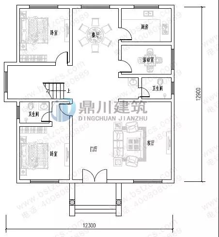 一 層: 門廳、客廳、臥室(附衛生間)、臥室、活動室、廚房、餐廳、衛生間