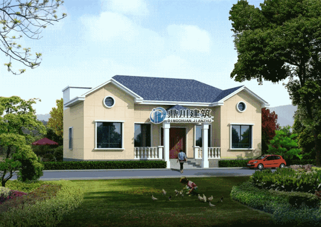 一層的小別墅住起來(lái)舒適又自在,可以看出,此款案例外墻采用的是淺黃色的墻磚,加上藍(lán)色的屋頂,經(jīng)典而雅致。一層的小別墅適合成員比較少的家庭,也比較適合在農(nóng)村養(yǎng)老。