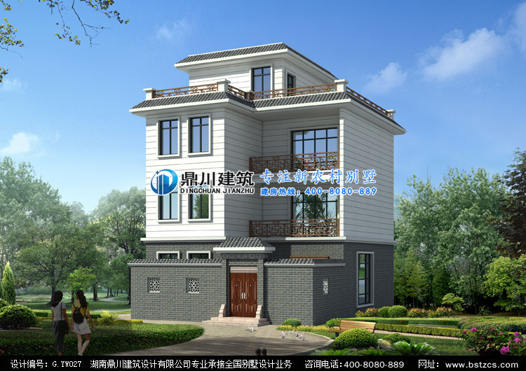 G.YW027四層帶院子平屋頂農村小別墅設計圖,農村四層房屋設計圖