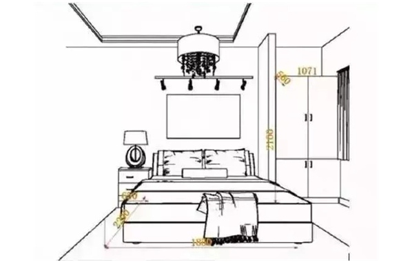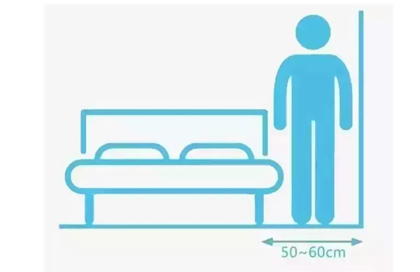 臥室床四周要留空,無論是單人床還是雙人床,一般長度都為2米,建議床頭與墻面之間預留5cm-10cm 的空間,床腳與墻面的空間,通常都是臥室的過道,建議過道寬度不少于70cm,才能方便家人通行。