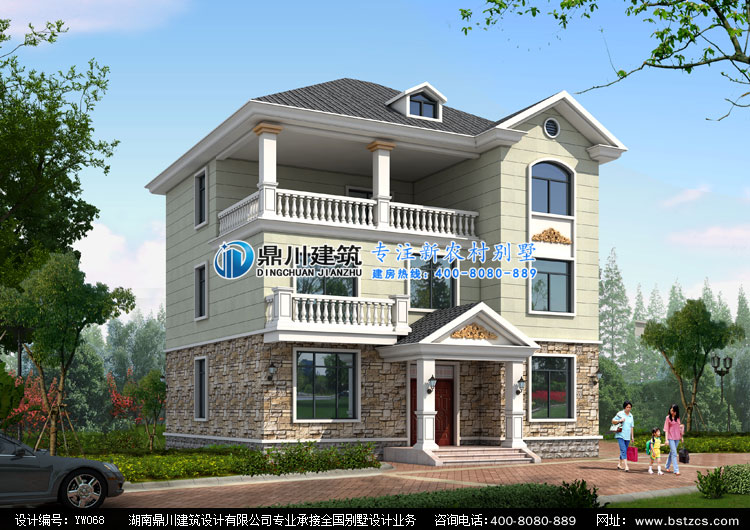 YW068新農(nóng)村三層小別墅圖紙效果圖,三層自建房屋設(shè)計圖
