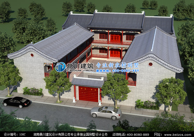 108C二層四合院設計圖外觀效果圖,三合院四合院私人定制設計圖
