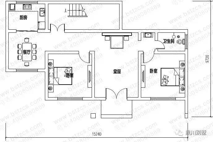 一 層:堂屋、2臥室、廚房、餐廳、衛(wèi)生間