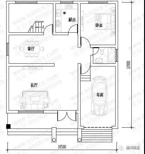 一 層:客廳、臥室、廚房、餐廳、衛(wèi)生間、車庫(kù)