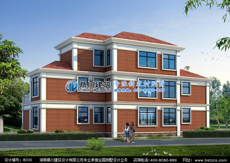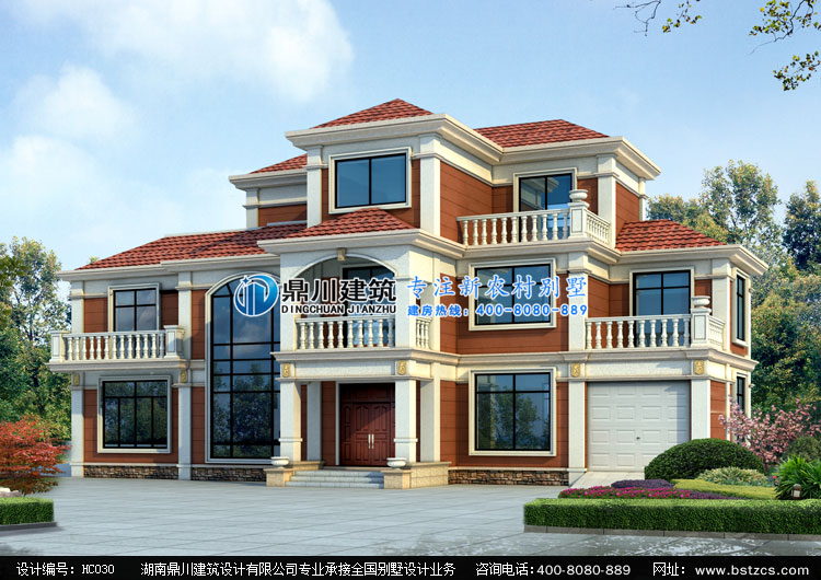 HC030大氣三層帶車庫別墅圖紙外觀效果圖,三層自建房別墅圖紙效果圖
