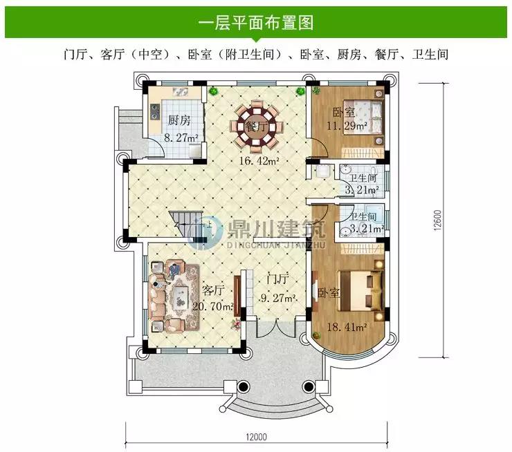農(nóng)村三層經(jīng)典歐式別墅,12米×12米挑空客廳盡顯尊貴大氣