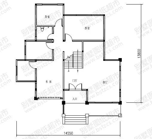 一 層: 門廳、客廳、2臥室、儲藏室、衛生間、車庫(附雜物間)