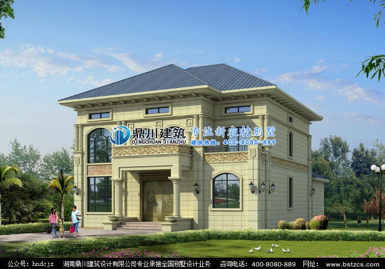 D0235歐式二層帶閣樓小別墅圖紙效果圖,鼎川建筑兩層小別墅設計